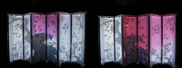 屏風の中に金魚が泳いでてバックスクリーンの色が変わり幻想的な水槽??でした!