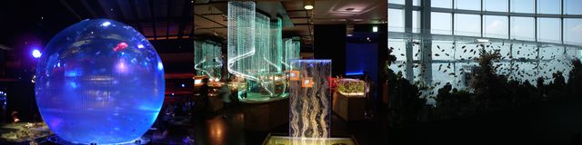 アクアリウムで東京シティビューを演出することにより、“美しい眺望(空の世界)”と“美しい水中(海)の世界”を 融合させた、まったく新しい幻想的な世界を作り出します。