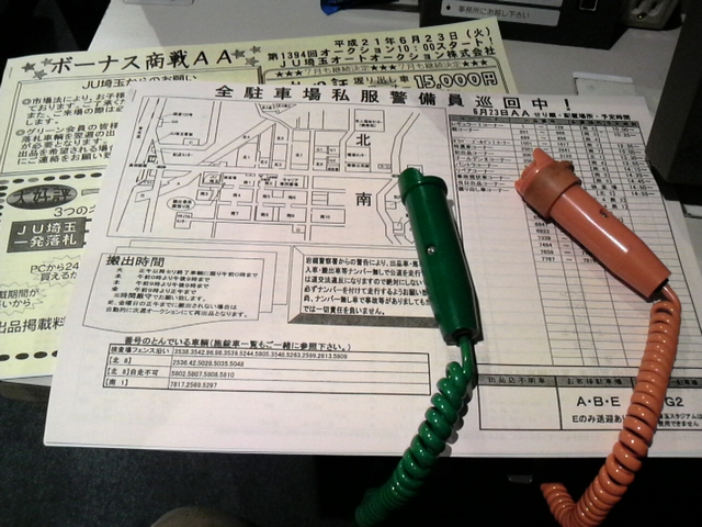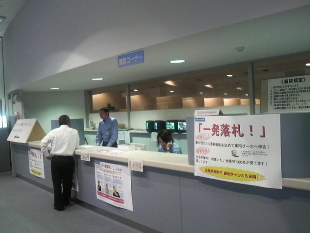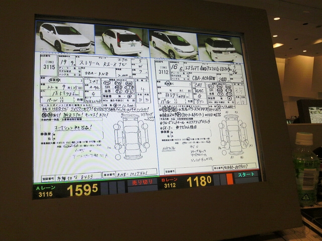 自分の座るポス席にはセリ状況の他に、画像付のリストや過去の取引価格(相場)情報など 競りに必要な情報が瞬時に分かる様になっています。競りは1台を約20秒位で競って行きます。 ですから欲しい車が同時に競りにかけられる事もしばしば・・・ その時は両手にポスを握りしめて競りに参加する事もあるんです。 オークションは競りですから当然売り手(出品側)の売りたい金額と買い手(競り参加)の買いたい金額が合わないと競りは流れて(流札)しまいます。