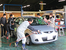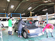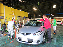 スタッフ総出で手洗い洗車を行います。