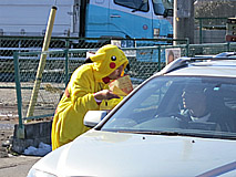 ピカチュウのキャラクターに扮したスタッフも積極的に呼び込みです!!